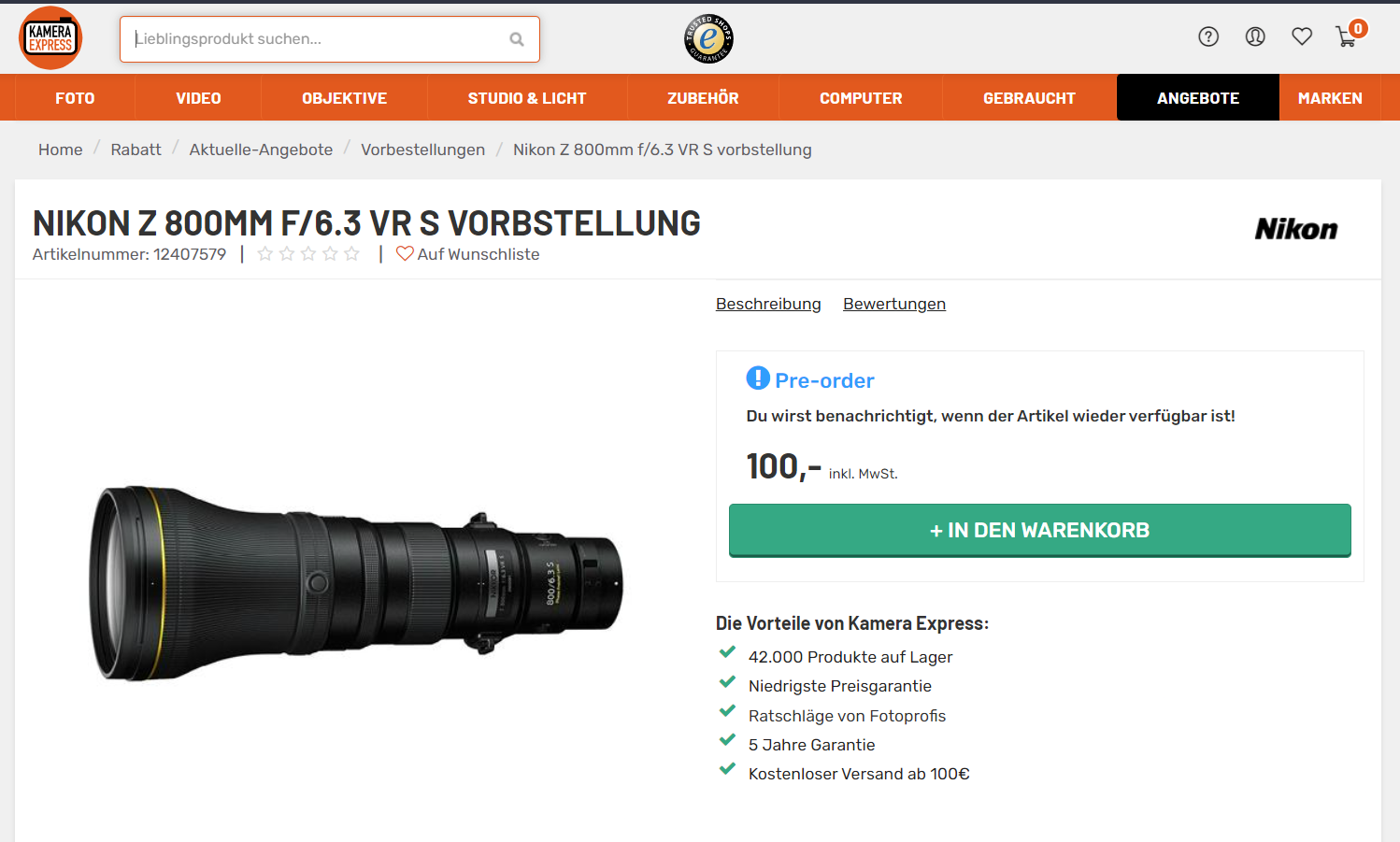 g-foto.de Geschrieben 7. April 2022 Share #50 Geschrieben 7. April 2022 vor 38 Minuten schrieb Kater Karlo: viel Spaß mit der neuen Linse, wenn Du sie hast. Gab es Aussagen zur Lieferbarkeit? Mich würde sie auch sehr reizen, aber auch wenn sie sehr günstig für die Brennweite ist, ist es doch ein Haufen Holz. Allerdings diese Linse erst durch den Preis in meinen Fokus gerückt, normalerweise brauche ich mir über solche Teles gar keine Gedanken machen, weil viel zu teuer Vielen Dank Reinhard! Angeblich sollen Ende April drei Stück bei ihm eintrudeln und eins ist meins. Ob das dann wirklich der Fall ist...who knows. Wenn die erste Tranche verkauft ist -und davon gehe ich jetzt schon aus- wird die Warteliste wohl ähnlich lang, wie das bereits bei der Z9 der Fall ist. Ich glaube, dass die Linse extrem großes Interesse in der Zielgruppe geweckt hat. Und wenn du mir letzte Woche erzählt hättest, dass ich mir in der Woche drauf eine Nikon Linse für 7,3k€ kaufen würde, hätte ich lauthals gelacht... Ja es ist viel Holz, aber in Anbetracht der nicht enden wollenden Inflation, sowie der relativ guten Wertstabilität von Super-Teles, sehe ich den finanziellen Part entspannt. Kater Karlo hat darauf reagiert 1 Link zum Beitrag Auf anderen Seiten teilen More sharing options...