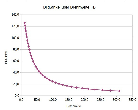 RoDo Geschrieben 24. Juni 2022 Share #38 Geschrieben 24. Juni 2022 vor 22 Minuten schrieb wasabi65: Nee, was ist WP? Die üblichen Abkürzungen: WP für Wikipedia, SP für Smartphone, BQ für Bildqualität, ... u. a., was ich hier im Forum lernen musste. vor 24 Minuten schrieb wasabi65: Und wieso färbst du Brennweiten ein und nicht Bildwinkel? Weil die Frage nach den Brennweitenstufungen gestellt wurde. Stellt man das grafisch dar, kommt eine "krumme" Kurve raus, wegen des arctan in der Formel: Hallo, lieber Besucher! Als Forumsmitglied (kostet nix) würdest du hier ein Bild sehen… Einfach hier registrieren – Wir freuen uns immer über neue Mitglieder! vor 34 Minuten schrieb wasabi65: Angenommen 10% Bildwinkel sind ein relevanter Unterschied in unserem Leben? Im Leben bestimmt nicht. Nur auf den Bildern nimmt man z. B. einen deutlichen Unterschied von 10% im UWW-Bereich (z. b. von 19 mm => 21 mm wahr, während im Telebereich ein Unterschied zwischen einem 400er oder 440er Tele kaum wargenommen wird. Deshalb ist die Stufung am Anfang klein und mit zunehmender Brennweite größer, aber nicht unbedingt zunehmend. Link zum Beitrag Auf anderen Seiten teilen More sharing options...