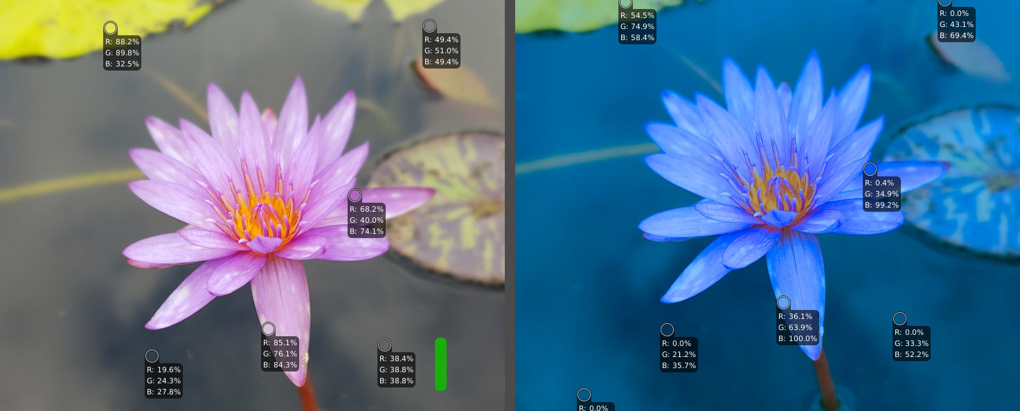 rostafrei Geschrieben 20. Januar 2023 Share #15 Geschrieben 20. Januar 2023 Am 15.1.2023 um 01:17 schrieb klaubra: ... Samsung S 9+ vor 1 Stunde schrieb RoDo: Hallo, lieber Besucher! Als Forumsmitglied (kostet nix) würdest du hier ein Bild sehen… Einfach hier registrieren – Wir freuen uns immer über neue Mitglieder! Im Originalbild (links) hat die ABW die Spiegelung einer Wolke als "nahe Neutralgrau" erkannt, Samsung-Smartphone kann ich aber alternativ zu Auto nur eine Farbtemperatur einstellen. Hm... Ich bin hier wegen der Überschrift reingestolpert. Ohne die visuell wahrnehmbare "echte" Naturfarbe der fotografierten Seerose zu kennen, erscheint mir das erste Foto aus dem Startbeitrag wesentlich natürlicher, als das zweite im Vergleich. Das zweite ausgearbeitete oder "korrigierte" von @RoDo und auch das Beispielfoto aus #8 erinnert mich eher an IR-Ausarbeitung mit oder ohne Farbmischung. Beim zweiten würde ich glattweg behaupten "Blaustich" bis "blaulastig" - entweder alles in der Umgebung von Blau reduzieren, im Farbmischer alle Blaukomponenten anpassen, blauwirksame Farbmischung ebenfalls anpassen (auch die sekundäre Mischung mit G / R bzw. M) oder von kalte auf warme Farbwerte verändern. Gerade in RT und PS hat man die selektive Möglichkeit, ob das im Samsung auch annähernd möglich ist? Ohne EBV mit Fotosoftware wird das vermutlich nichts. Kann es sein, dass entweder irgendein weiterer Effekfilter im Samsung beim TO aktiviert ist oder tatsächlich nur ein angepasster K-Wert für WB schon die Wirkung deutlich verbessert? Da scheinen alle sichtbaren Farben im Farbkreis verschoben zu sein, irgendwas passt da überhaupt nicht zusammen. Link zum Beitrag Auf anderen Seiten teilen More sharing options...
