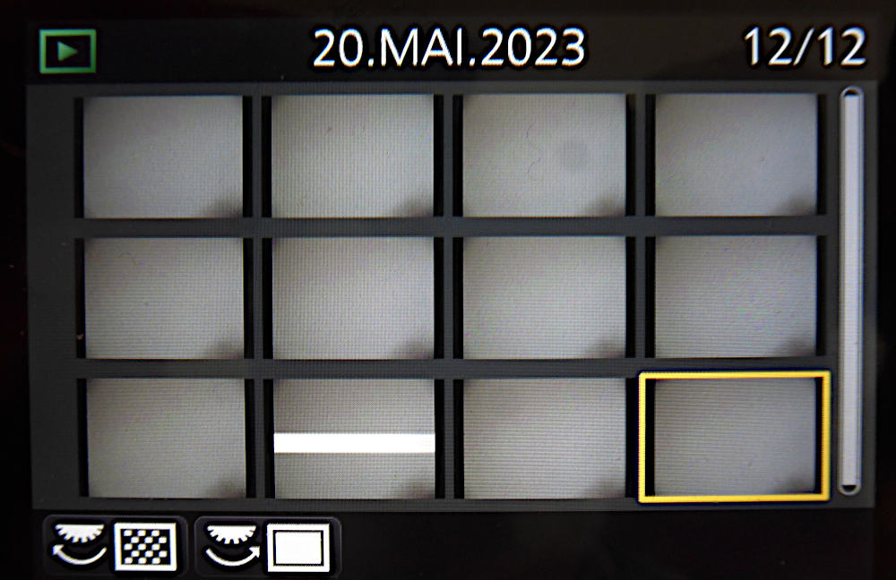 RoDo Geschrieben 20. Mai 2023 Share #10 Geschrieben 20. Mai 2023 (bearbeitet) Versuch macht klug: Kamera (G81) aufs Stativ geschraubt, E-Shutter aktiviert und auf Dauerfeuer gestellt. Dann mit einem Blitz im Automatik-Modus und Handauslösung reingeschossen. Die Blitzdauer dürfte weit unter 1/1000 liegen: Hallo, lieber Besucher! Als Forumsmitglied (kostet nix) würdest du hier ein Bild sehen… Einfach hier registrieren – Wir freuen uns immer über neue Mitglieder! Display abfotografiert und auf einem der grauen Bilder ist der Streifen vorhanden. bearbeitet 20. Mai 2023 von RoDo wasabi65, xbeam, Kleinkram und 4 weitere haben darauf reagiert 6 1 Link zum Beitrag Auf anderen Seiten teilen More sharing options...