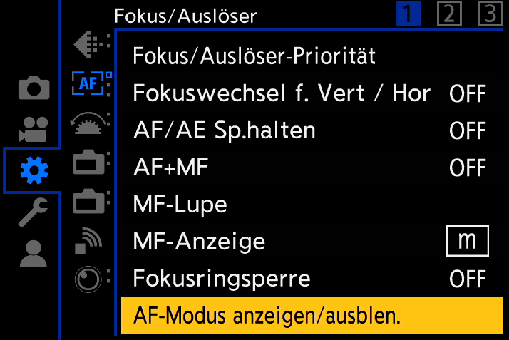 ObjecTiv Geschrieben 19. November 2023 Autor Share #328 Geschrieben 19. November 2023 (bearbeitet) @Tifoso Es gibt die Möglichkeit über die AF-Modus-Taste die verschiedenen Optionen durchzuschalten. Wenn du jedoch bestimmte Fokus-Modi ohnehin nie nutzt, kannst du diese ausblenden, dann reduziert sich die Auswahlmöglichkeit über die AF-Mode-Taste entsprechend. Hallo, lieber Besucher! Als Forumsmitglied (kostet nix) würdest du hier ein Bild sehen… Einfach hier registrieren – Wir freuen uns immer über neue Mitglieder! Hallo, lieber Besucher! Als Forumsmitglied (kostet nix) würdest du hier ein Bild sehen… Einfach hier registrieren – Wir freuen uns immer über neue Mitglieder! lg bearbeitet 19. November 2023 von ObjecTiv gromit, Apertur und Tifoso haben darauf reagiert 1 2 Link zum Beitrag Auf anderen Seiten teilen More sharing options...