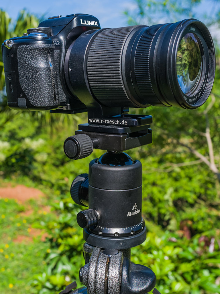 Deshalb habe ich darauf geachtet, dass der Verbindungssteg sehr dicht am Objektivgehäuse positioniert ist. So kann in der Freihandanwendung der Steg zum Stabilisieren mit der Handinnenfläche benutzt werden. Zusätzlich bietet es sich an, den Steg als Schutzbügel einzusetzen, zum einfachen Auflegen auf Untergründen, die sonst das Objektiv beschädigen könnten.