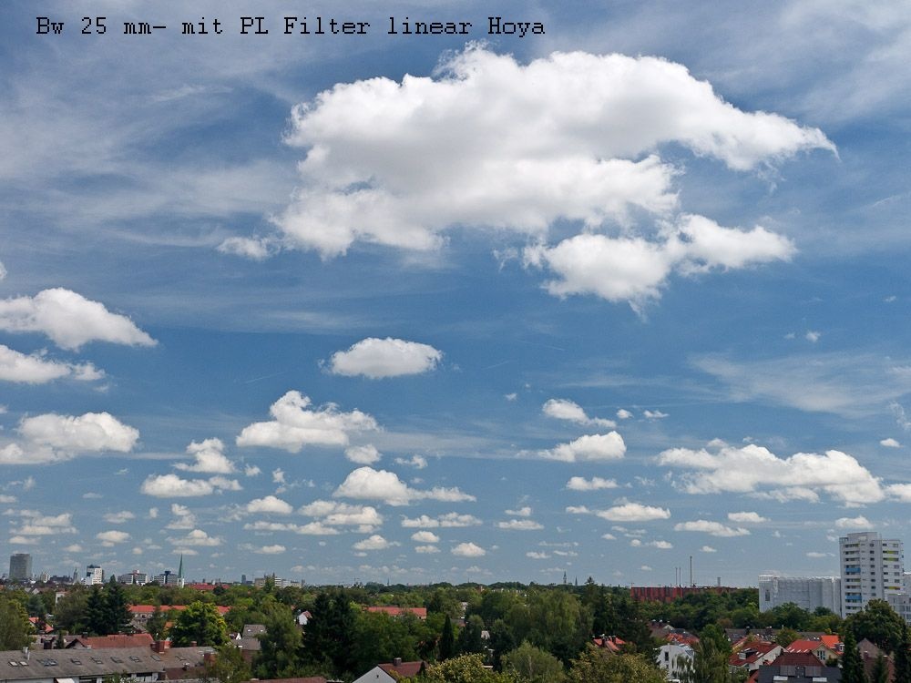 joachimeh Geschrieben 3. August 2011 Share #30 Geschrieben 3. August 2011 Die stärkste Wirkung bei Landschaftsaufnahmen haben Polfilter bei einem Winkel von 90° zur Sonne. D.h. bei intensivstem Streiflicht! Das ist genau die Situation, bei der die sog. "Gegenlicht"blenden besonders segensreich wirken. ... ist völlig klar! Die Frage bleibt dennoch, ob so eine kurze Blende tief (und "schwarz", d.h. lichtschluckend beschichtet) genug ist, um Streulicht zu verhindern. Was verwendest Du denn? Link zum Beitrag Auf anderen Seiten teilen More sharing options...