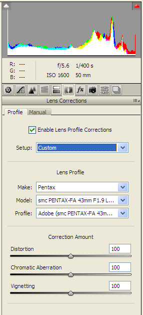 Ich nutze mit meinen anderen Kameras dieses Dialogfenster so regelmässig wie die meisten anderen Fenster auch. Wenn Korrektur von Verzeichnung/CA/Vignette unerwünscht, wird sie eben dementsprechend reduziert oder ganz deaktiviert.