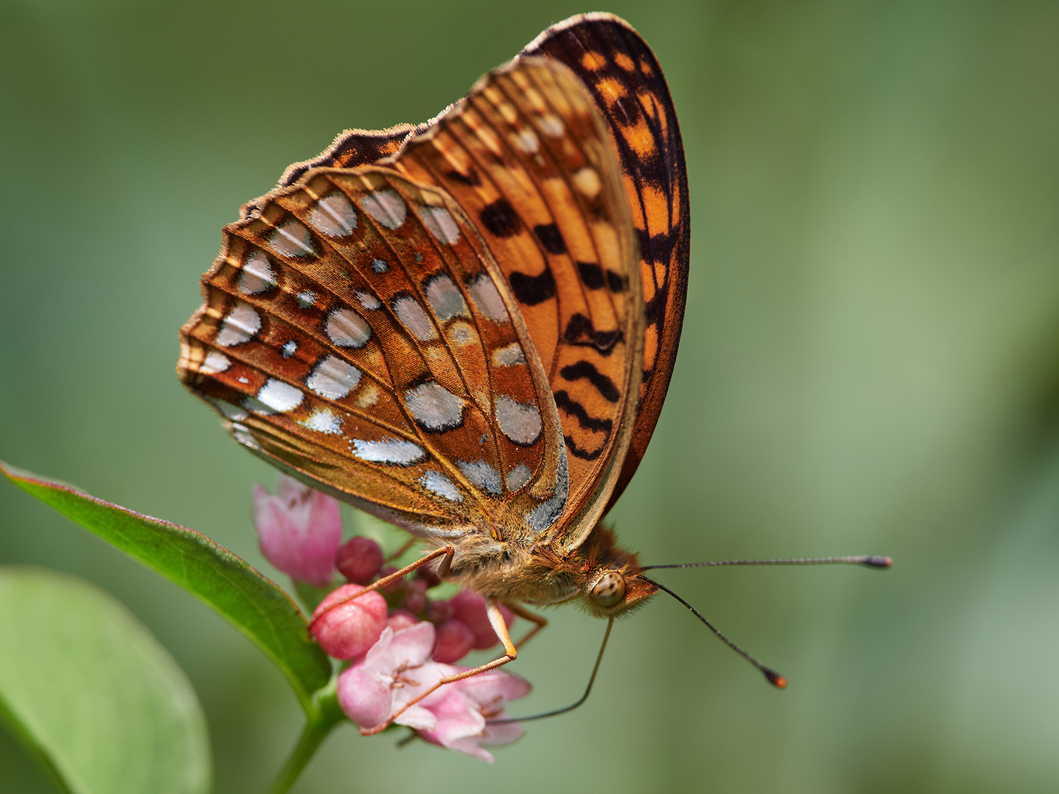 Ja, sieht nach Feuriger Perlmutterfalter (Argynnis adippe) aus. Beim Kaisermantel ist die Unterseite der Hinterflügel grünlich und hat silberfarbene Streifen.
