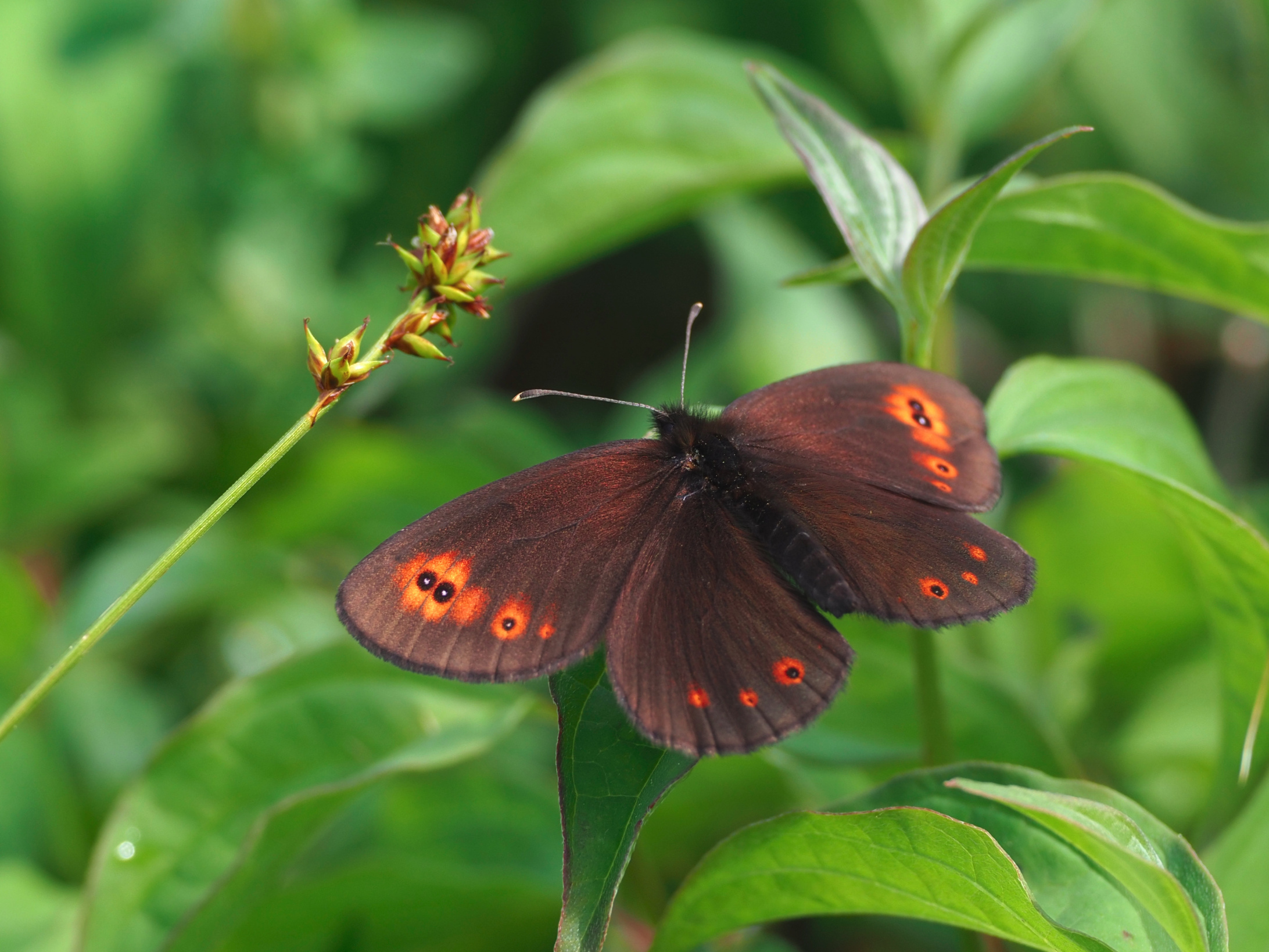 Mein Büchlein gibt einen "Rundaugen-, Früher Mohrenfalter" (Erebia medusa) her. Könnte es sein, dass Sättigung in deinen Bildern ein bisschen überzogen ist? Also Orange zu kräftig ist? Die Flugzeit in nur einer Generation ist von Mai bis Ende Juli. Der Falter liebt Waldwiesen, Streuwiesen, Trockenrasen, feucht oder trocken.