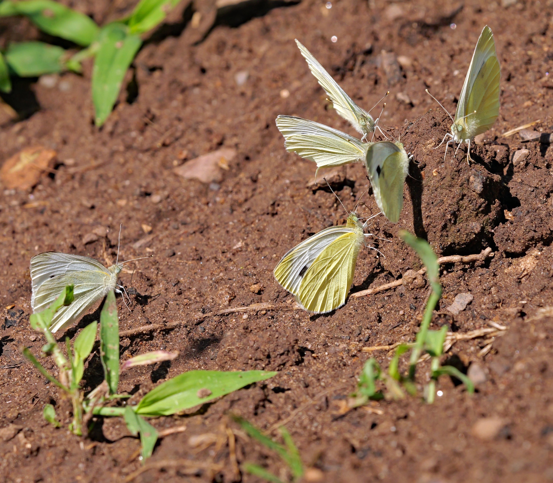 es gab etwa doppelt so viele Kohlweißlinge, die sich da tummelten - und sich  ganz lange um das eine Erdhäufchen herum sammelten.... keine Ahnung, warum....