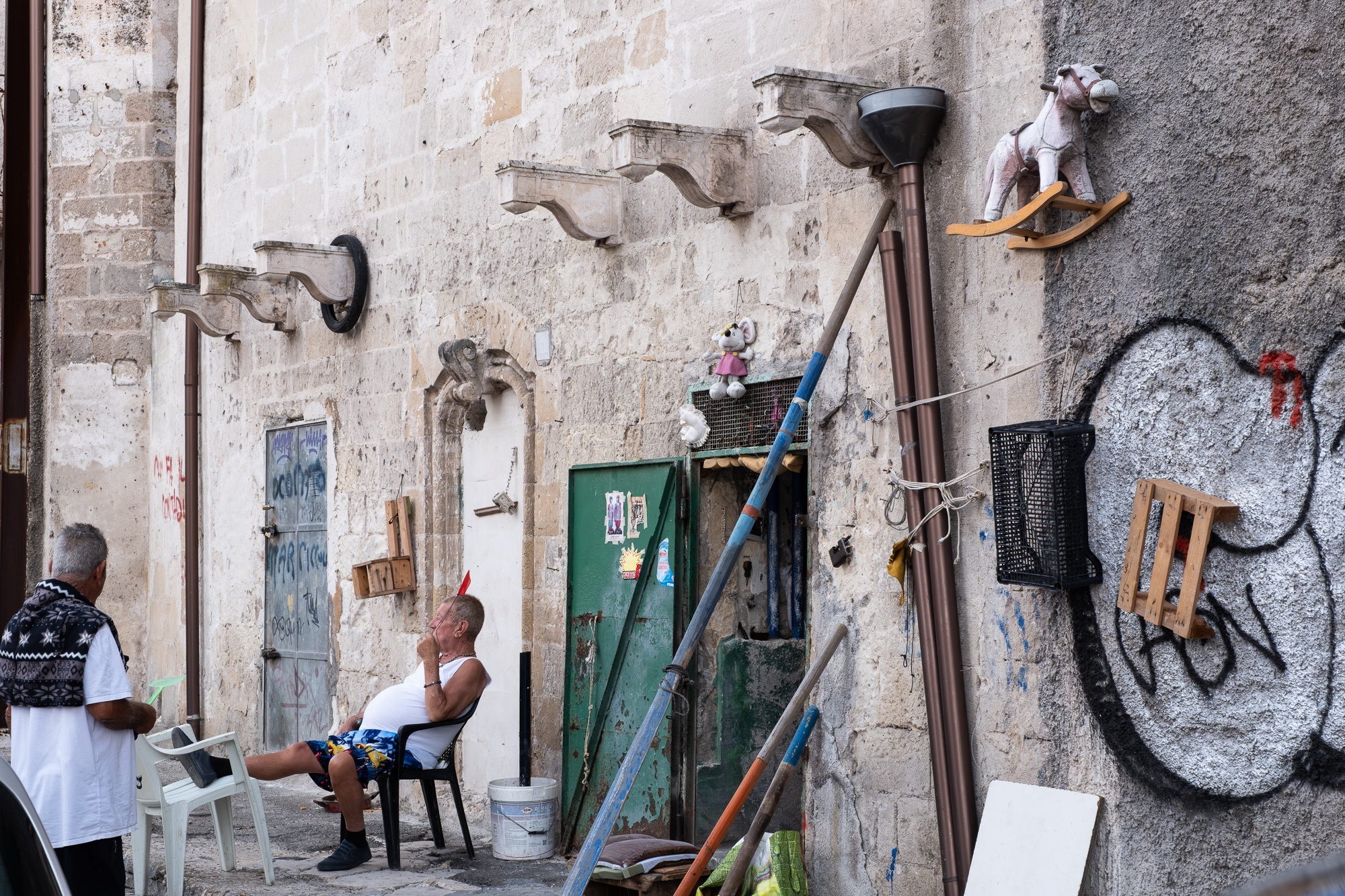 Mich spricht besonders das Erste an, auch wenn ich die hintere "Ecke" bei diesem Motiv strenger auf die rechte Drittellinie gelegt hätte. Damit wäre die Straßendiagonale dann vielleicht auch etwas intensiver ausgefallen. Für mich wird das Bild "geteilt" durch die hintere Senkrechte. Der Mann rechts außerhalb davon macht es auf jeden Fall spannend, er könnte sogar noch einen Tick weiter vorn sein.