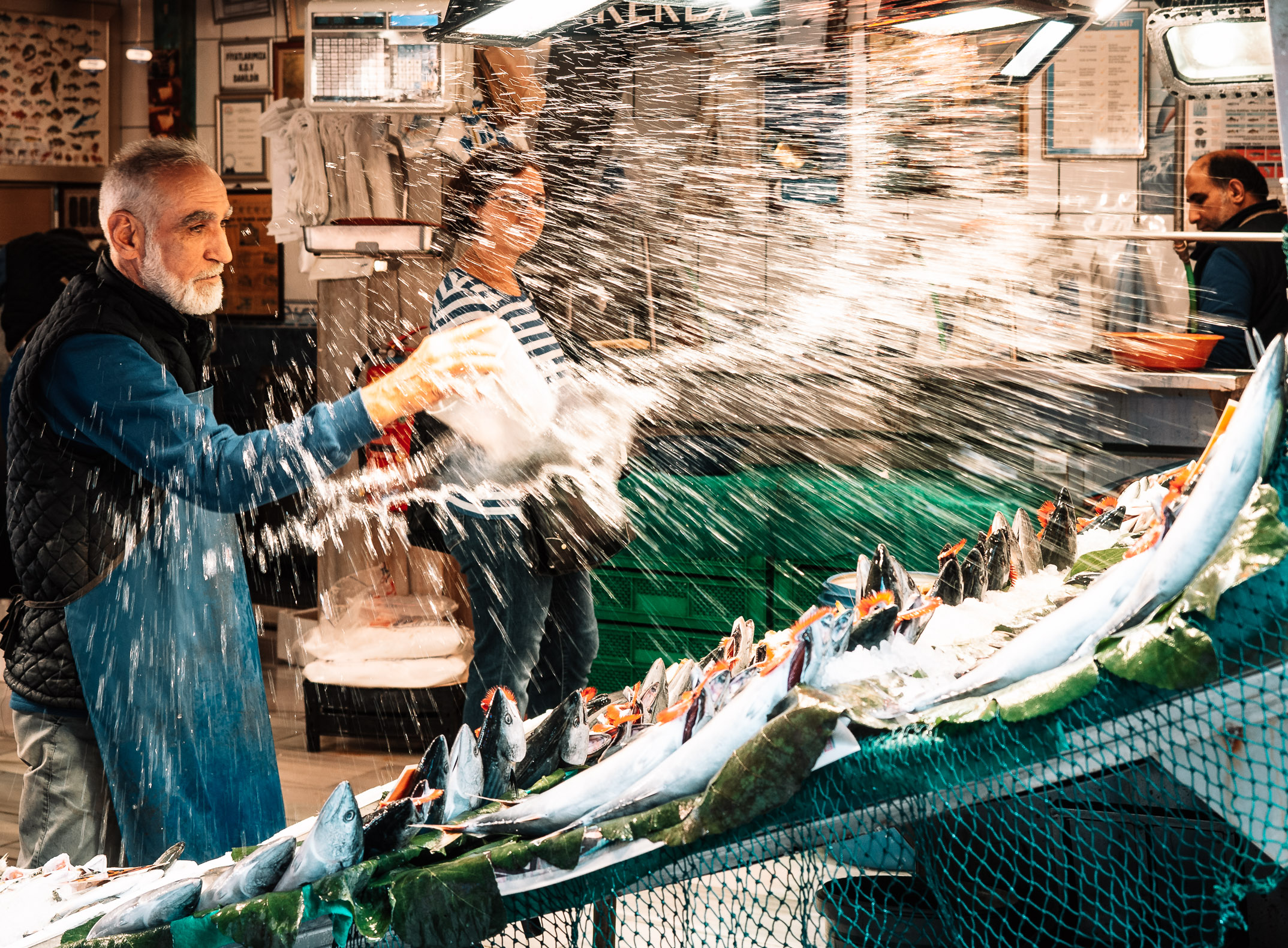 ich nenne nur die, die ich unter Street einordnen würde: der Fischhändler, die Frau in der U-Bahn und die Frauen im Straßencafé. Einfach weil es am Authentischsten auf mich wirkt. Das kann man überall sehen, aber du hast einen kleinen Moment daraus festgehalten. Die Personen machen nichts besonderes, sondern einfache, normale Alltagsverrichtungen mit kleinen Extras. Der Fischhändler kühlt seine Ware mit einem Wasserschwall, die Frau steht still und der Zug rauscht vorbei, im Straßencafé nutzt die Frau mit Hijab als einzige ein Handy/SP - als Gegensatz zu denen, die ohne Kopfbedeckung ohne Handy in der Hand dort sitzen.