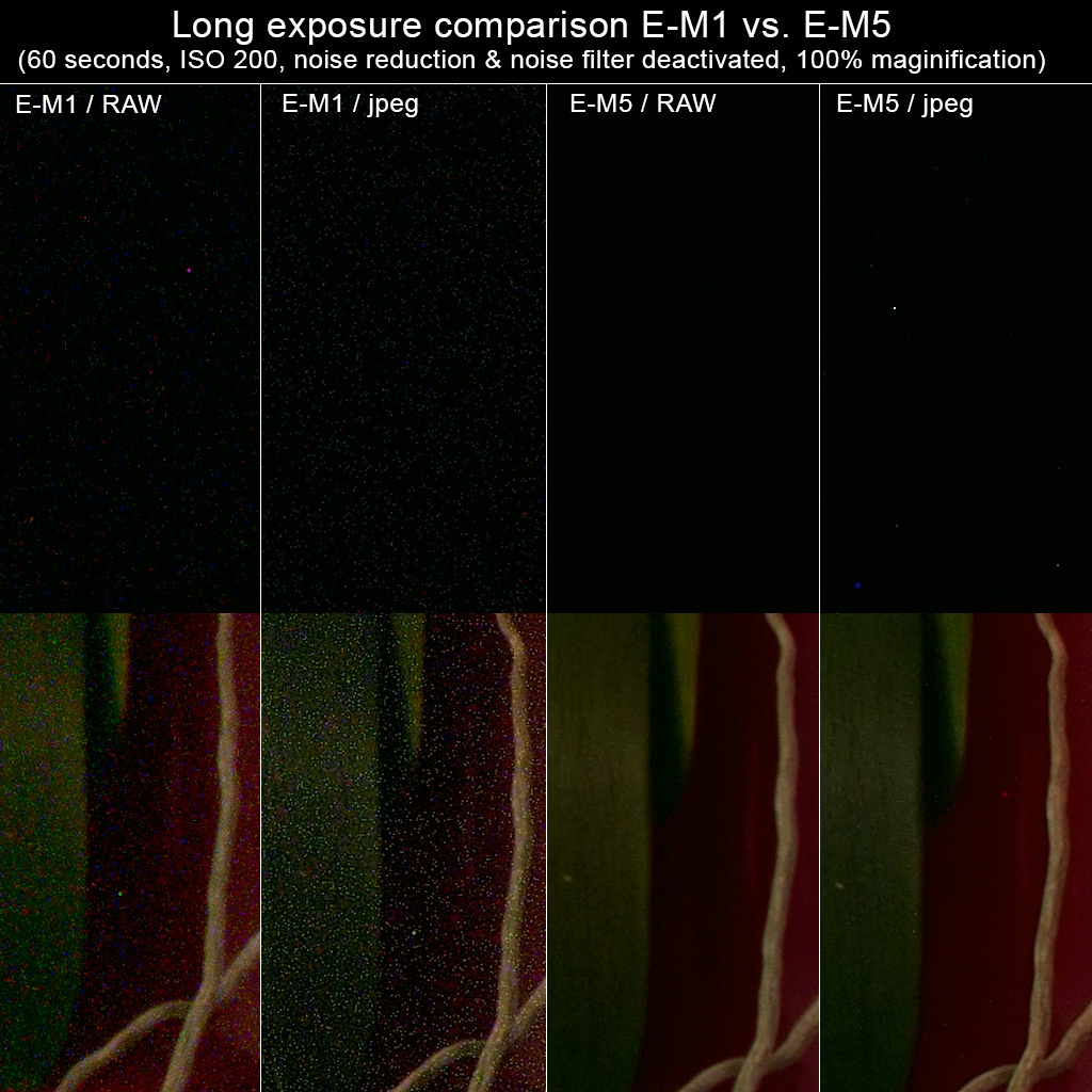 bei 60 Sekunden ist das RAW der E-M1 übersät mit Hot-Pixeln oder was auch immer dieses bunte Rauschen sein soll. Dahingegen ist das RAW der E-M5 nahezu clean..:confused: